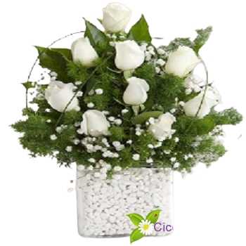 Hızlı Teslimat Mika Beyaz Gül Aranjman Gardenia Çiçek 1600 TL + KDV