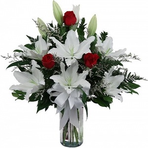 Hızlı Teslimat Beyaz Gül Lilyum Aranjman Gardenia Çiçek 1300 TL + KDV