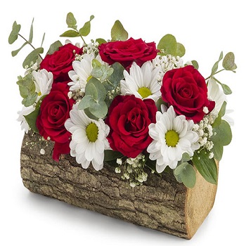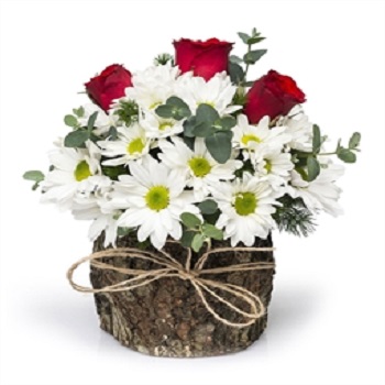 Hızlı Teslimat Kütük İçerisinde Papatya Ve Gül Gardenia Çiçek 1499 TL + KDV