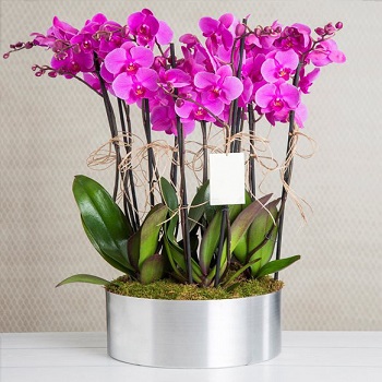 Hızlı Teslimat metal saksıda 8 dal pembe Orkide Gardenia Çiçek 8599 TL + KDV
