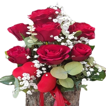 Hızlı Teslimat Kütükte Kırmızı Gül Aranjman Gardenia Çiçek 1750 TL + KDV