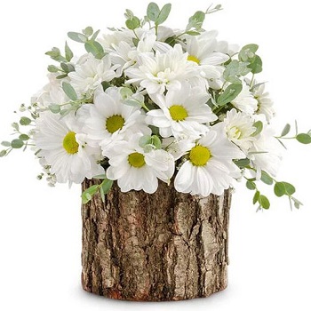 Hızlı Teslimat Kütük İçerisinde Papatya Gardenia Çiçek 949 TL + KDV