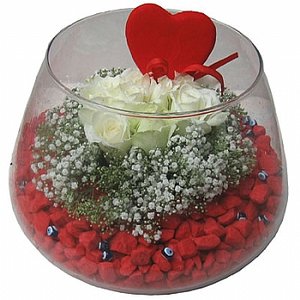 Hızlı Teslimat Fanus İçinde Beyaz Güller Gardenia Çiçek 1600 TL + KDV